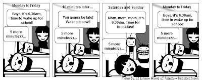 Why is it that the boys are up and about at 6.30am on the weekend but struggle to wake up on school days! I asked the boys this same question when their chatters woke me one beautiful Sunday morning and their replies were, "I don't know mom, I just wake up and can't go back to sleep."